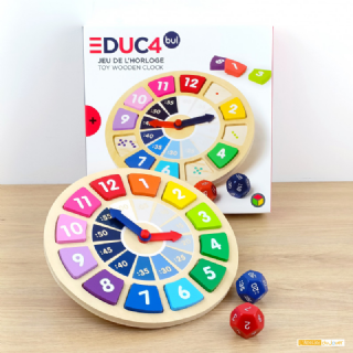 Apprendre l'heure en jouant, c'est maintenant possible grâce à cette horloge en bois ! L'enfant lance les dés à douze faces et manipule les aiguilles pour reproduire l'heure indiquée. Puis c'est aux parents de bouger les aiguilles et l'enfant doit être capable de lire l'heure indiquée par l'horloge. Les belles formes colorées à encastrer autour viennent clôturer de manière ludique la séance riche en apprentissage ! L'enfant va également apprendre à se repérer dans le temps.