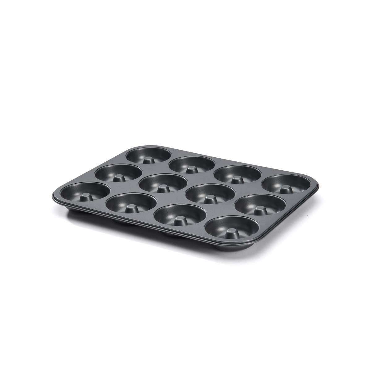 Plaques robustes en acier revêtu pour la cuisson de pâtisseries individuelles : mini-savarins, mini-babas ou donuts.
